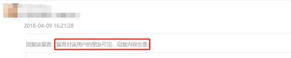正当西瓜君以为这项功能将被无限期延迟上线后,前天西瓜君在回复留言的时候,就惊喜地发现,在留言对话框上提示“留言对该用户的朋友可见,回复内容也是”。