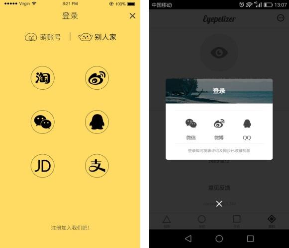 这种方式比较少但是无疑是最快捷的方式,相信大家平时应该用这种方式也比较多,因为可以避免使用手机注册带来的繁琐步骤,可以节约很多时间,你在第三方应用中进行授权后产品会直接调用接口,生成ID登录后,你的头像、昵称等个人信息甚至可能同时会获取你的好友列表,让你知道还有哪些好友也在使用产品,可以有效地减少对产品的陌生感,同时也便于应用在第三方中进行分享。