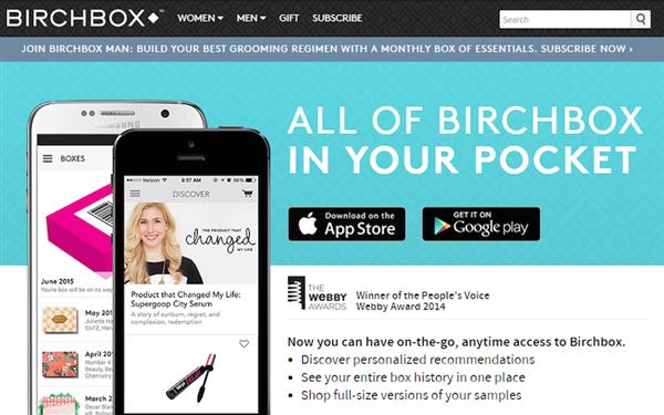 Birchbox是美容产品的订阅服务。他们的顾客几乎都是女人。另一方面,Thrillist的目标观众主要是男性。