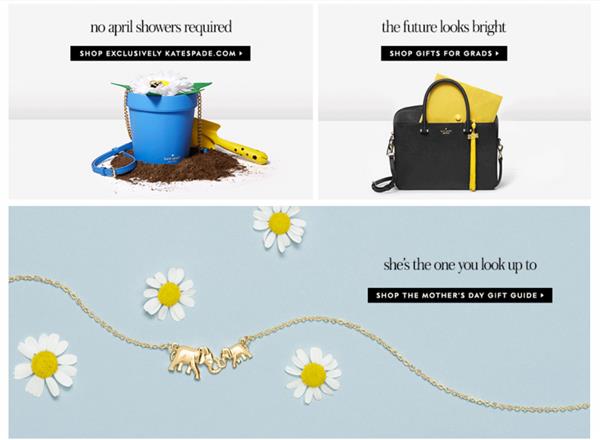 您可以看到这反映在您最喜欢的一些品牌的颜色选择中。例如,以纽约为中心的女性时尚标签凯特·斯潘德(Kate Spade)在主页上使用明亮的色彩和柔和的色调: