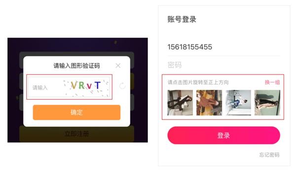出于安全考虑,有些应用会让用户输入图形验证码、字符验证码、旋转图片、滑动验证等方式,目的是确认是人为注册而非软件恶意注册。